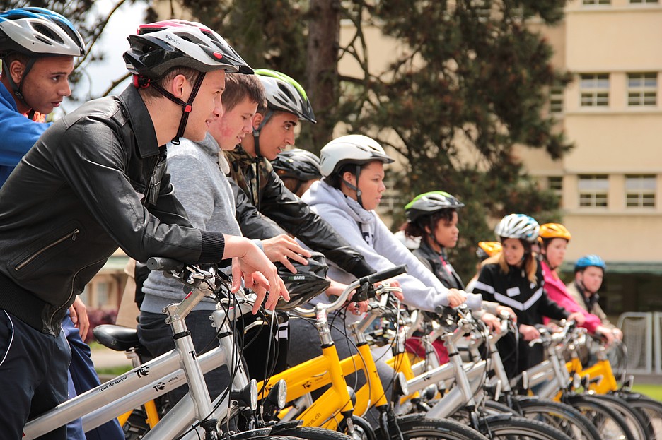 Promotion Santé Suisse soutient plusieurs programmes de promotion du vélo à l’école, comme Bike2school ou le Défi Vélo. Autre initiative, le Vélobus de l’Association transports et environnement (ATE). Les enfants circulent en convoi, accompagnés par des adultes qui encadrent le déplacement, avec pour objectif l’autonomie progressive de l’enfant. Le Plan de mobilité scolaire de l’ATE offre également des pistes. Il s’agit d’une démarche participative en cinq étapes qui permet d’initier une réflexion générale sur la mobilité des enfants. L’idée est de donner la parole aux enfants, parents et partenaires de l’école afin de proposer des actions concrètes de mise en œuvre, pour un itinéraire sûr vers l’école.
