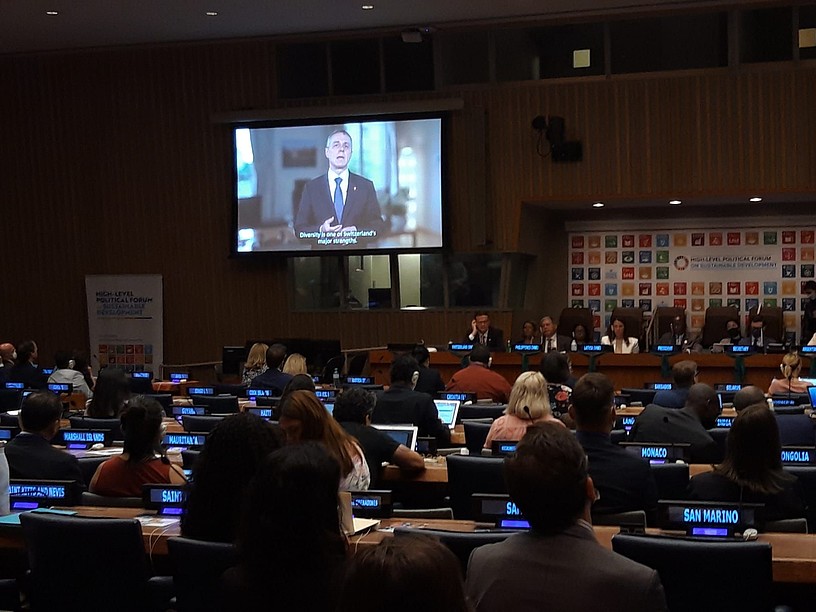 L’Association des Communes Suisses a été invitée à rejoindre la délégation suisse au Forum politique de haut niveau pour présenter le 3ème Rapport national volontaire (VNR) de la Suisse sur la mise en œuvre des objectifs de développement durable de l’Agenda 2030 devant l’ONU à New York. L’ACS a donné suite à cette invitation et a eu la chance, par le biais de sa déléguée Manon Röthlisberger, de prendre part à la table-ronde «Swiss VNR Lab» pour souligner le rôle que joue le niveau communal suisse dans la mise en œuvre effective de cet engagement international.