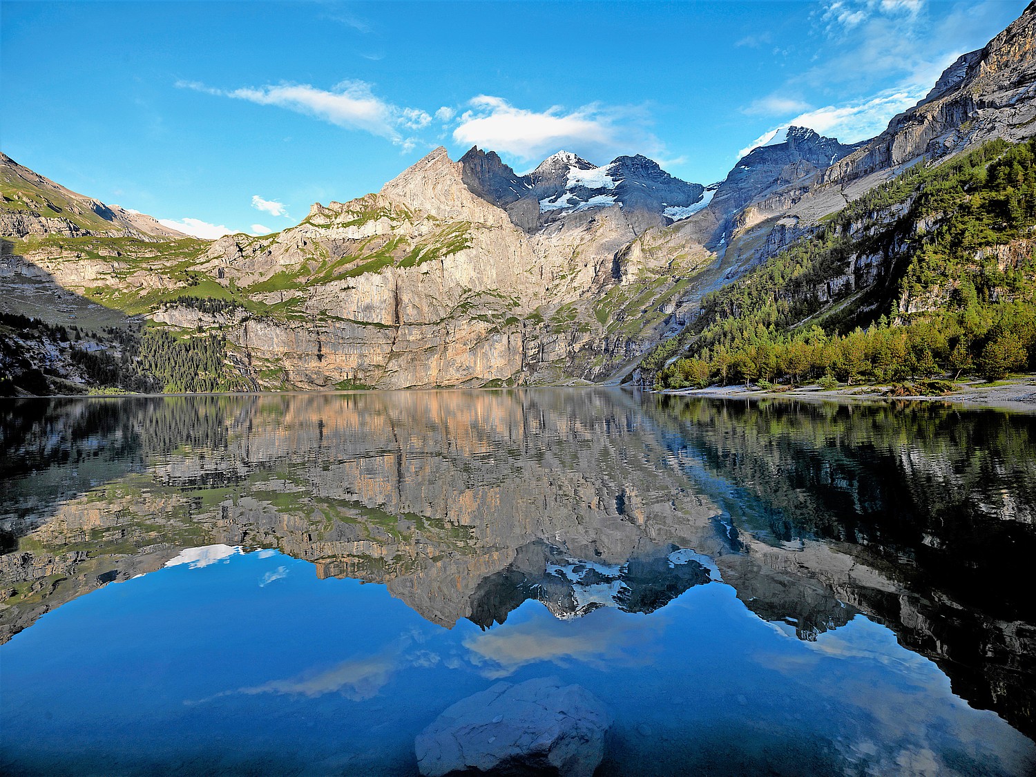 Le lac d’Oeschinen est désormais connu pour sa partie sud instable. Le recul du permafrost est sans doute partiellement responsable des mouvements de terrain autour du «Spitze Stei», sur le versant nord du Doldenhorn. En 2020, le côté sud de l’idyllique lac de montagne a même dû être interdit d’accès. Près de 20 millions de mètres cubes de roche sont en mouvement au «Spitze Stei». Les conséquences d’une chute soudaine de cette masse seraient dévastatrices, surtout pour le village de Kandersteg, qui se trouve dans la vallée. Un scénario toutefois improbable selon les experts.