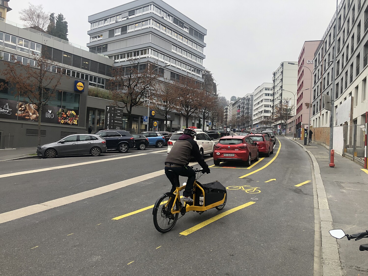 Les voies nouvellement créées sont directes, confortables et sûres, et apportent donc une réelle valeur ajoutée au quotidien des cyclistes. Par exemple, à l’avenue de Provence, la suppression d’une voie de présélection a permis de créer un grand axe cyclable en continu entre le centre-ville et le campus universitaire. Ou à la rue Pépinet: là où une rue en sens unique rendait difficile la liaison entre deux niveaux du centre-ville, une zone de rencontre permet aujourd’hui de circuler librement. Ou encore à la rue Saint-Martin, où la Ville a créé des pistes cyclables larges et protégées des voitures, entre le trottoir et les rangées de places de parc. La municipalité était persuadée que l’on ne pourrait convaincre plus de monde de l’attractivité du vélo qu’à condition que l’infrastructure soit assez sécurisée et confortable.