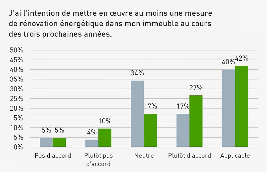 • Dans la mesure où la volonté d’assainir varie d’un propriétaire à l’autre, il faut veiller à ce que les offres d’information et les spécialistes de l’assainissement choisis soient adaptés à leur niveau respectif de volonté de rénover.