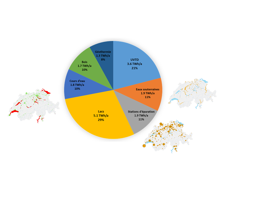 La définition des principes de base de l’utilisation des énergies indigènes et renouvelables (rejets de chaleur des usines de valorisation thermique des déchets (UVTD), eaux des lacs et des rivières, eaux souterraines et eaux usées, bois et géothermie) ou, pour le dire simplement, des règles relatives à la mise à disposition de la chaleur est du ressort de la Confédération. La couverture et surtout la réduction des besoins en chaleur des bâtiments relèvent généralement de la compétence des cantons. Mais aujourd’hui, les cantons délèguent généralement la planification énergétique aux communes, ce qui rend difficile l’utilisation optimale des sources de chaleur renouvelables mentionnée dans les principes de base et les principes directeurs de la Conférence des directeurs de l’énergie précédemment évoqués. Cela peut fonctionner dans de grandes villes, comme en attestent des exemples couronnés de succès. Néanmoins, cette démarche s’avère beaucoup moins efficace dans de nombreux autres cas.