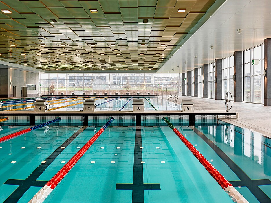 La plus grande consommation d’énergie dans les piscines couvertes est liée au réchauffement et au renouvellement de l’eau des bassins (env. 35%), à l’aération et à la climatisation (env. 35%) ainsi qu’à l’eau chaude sanitaire (env. 10%). Comment augmenter l’efficience énergétique sans réduire le bénéfice escompté? Une approche en trois étapes est conseillée. Une optimisation énergétique de l’exploitation devrait tout d’abord être réalisée. Il est ensuite possible d’effectuer des investissements partiels dans des installations et des appareils plus efficients énergétiquement et enfin de procéder à des assainissements et des rénovations. La ville d’Uster (ZH) est un bon exemple. Dans sa piscine couverte, elle investit constamment dans des mesures d’économie d’énergie. Ceci grâce à l’optimisation de la production de chaleur dans la piscine couverte, à laquelle la salle de gymnastique et le bâtiment d’exploitation adjacent sont liés par le biais d’une conduite de chauffage à distance.