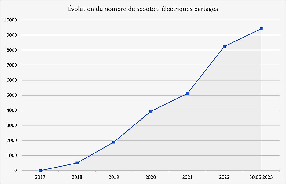 Depuis que les premières trottinettes électriques partagées ont fait leur apparition sur les routes suisses en 2018, l’offre s’est rapidement développée d’année en année. Dans la plupart des cas, le partage de ces trottinettes est géré par des fournisseurs internationaux qui contribuent à une mobilité durable grâce à une offre financée en grande partie par le secteur privé. Depuis longtemps, ce ne sont plus seulement les centres des agglomérations qui sont en ligne de mire, mais aussi les petites villes et les communes. Actuellement, près de 10 000 trottinettes électriques partagées circulent dans environ 40 villes et communes. C’est ce que montrent les chiffres de la Swiss Alliance for Collaborative Mobility (CHACOMO), à laquelle sont affiliés tous les fournisseurs renommés actifs en Suisse.